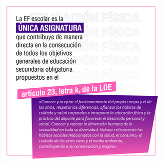 El currículo de Secundaria está en audiencia e información pública hasta el 1 de diciembre. Necesitamos tu apoyo para que aumenten la carga horaria de Educación Física. El mínimo propuesto por el Ministerio, 35 horas de Educación Física por curso (menos de hora y media a la semana), incumple todas las recomendaciones internacionales, e incluso el propio mandato constitucional del artículo 43.3.