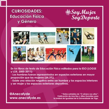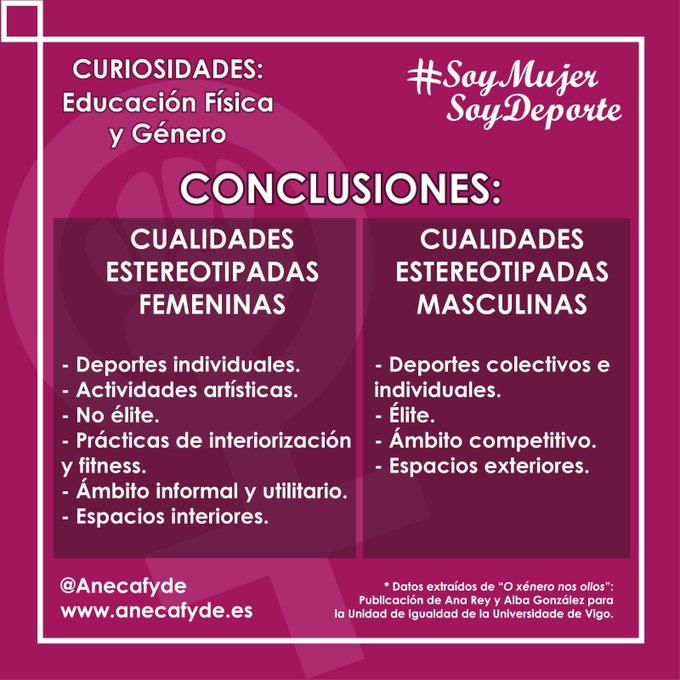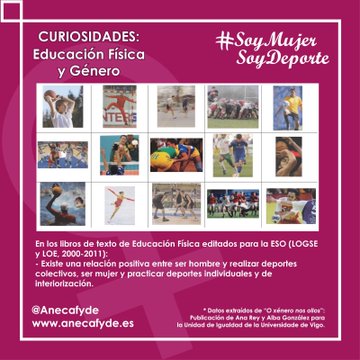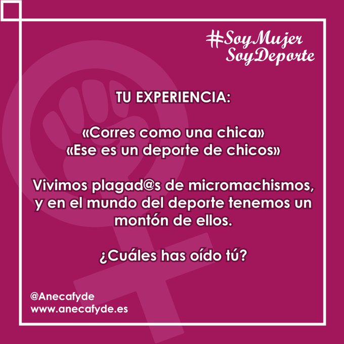 Con motivo del Día Internacional de la Mujer, la pasada semana Anecafyde, la Asamblea Nacional de Estudiantes de Ciencias de la Actividad Física y del Deporte, retomaba su campaña #SoyMujerSoyDeporte, y este año con mensajes y datos impactantes para propiciar un cambio social entorno a la educación física y el deporte.