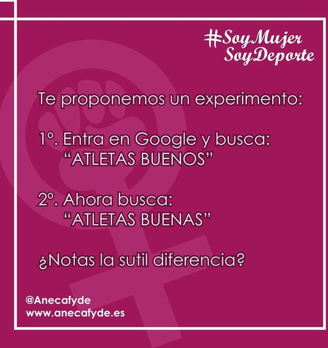 Han visibilizado el machismo en el sector deportivo haciéndonos reflexionar a través de las búsquedas con términos en masculino y en femenino, de los titulares sobre mujeres deportistas que se centran en cuestiones ajenas a la competencia y las capacidades, de las equipaciones en las diferentes disciplinas, de las expresiones sesgadas y cargadas de estereotipos de género y del contenido de los libros de texto de la materia educación física.